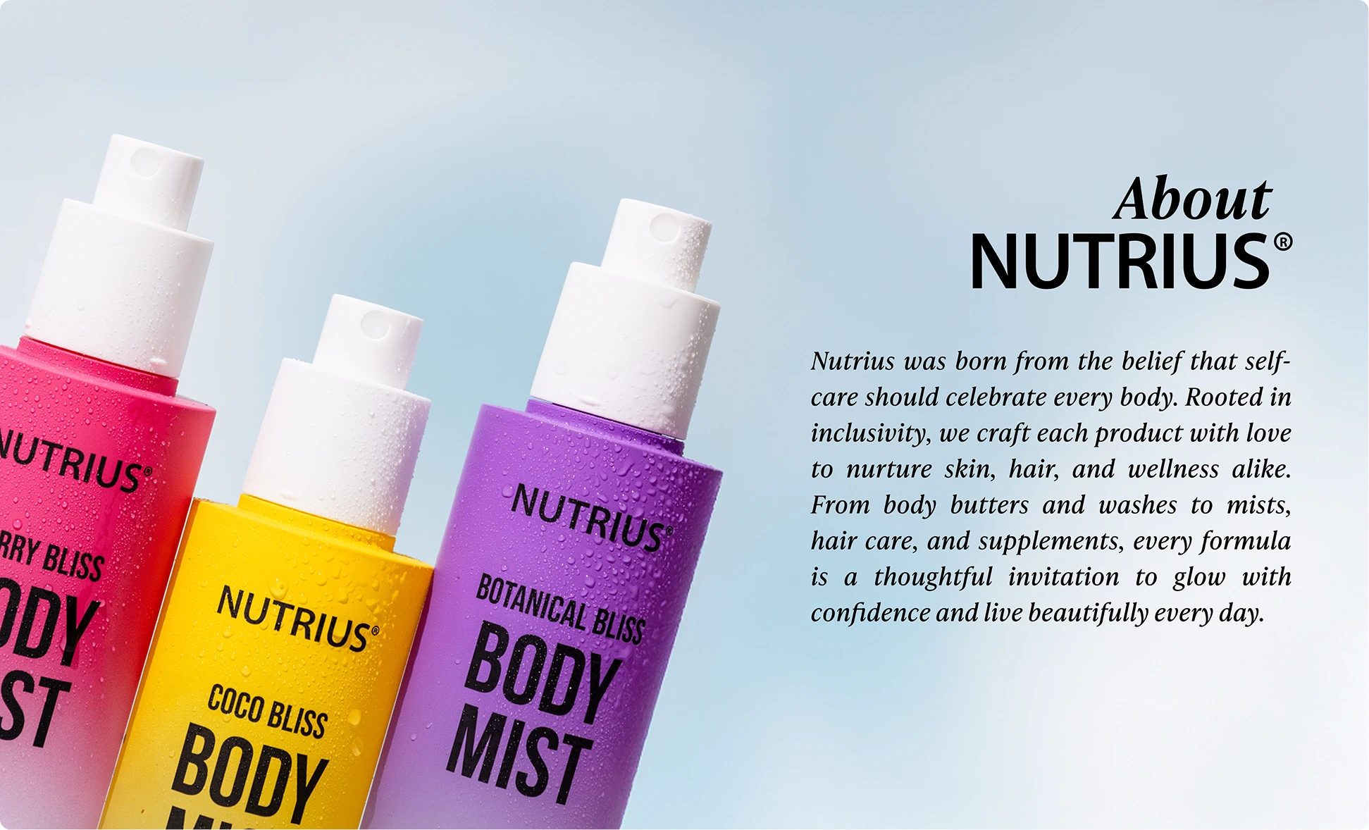 At Nutrius, we believe glowing skin is more than a routine – itโs an attitude. Our clean, conscious formulas are designed to fit seamlessly into your day, fueling both your skin and your spirit